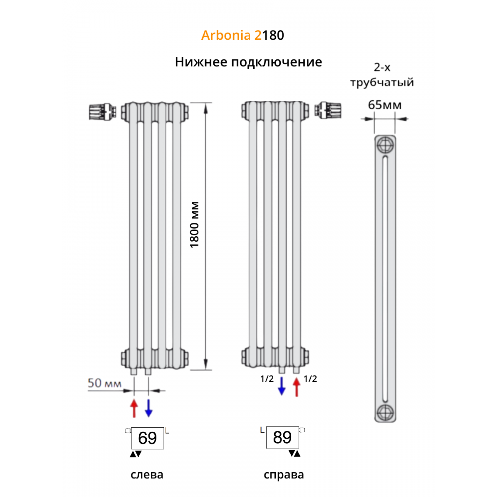 | Подключение | Нижнее со встроенным вентилем вверху №69/№89 |